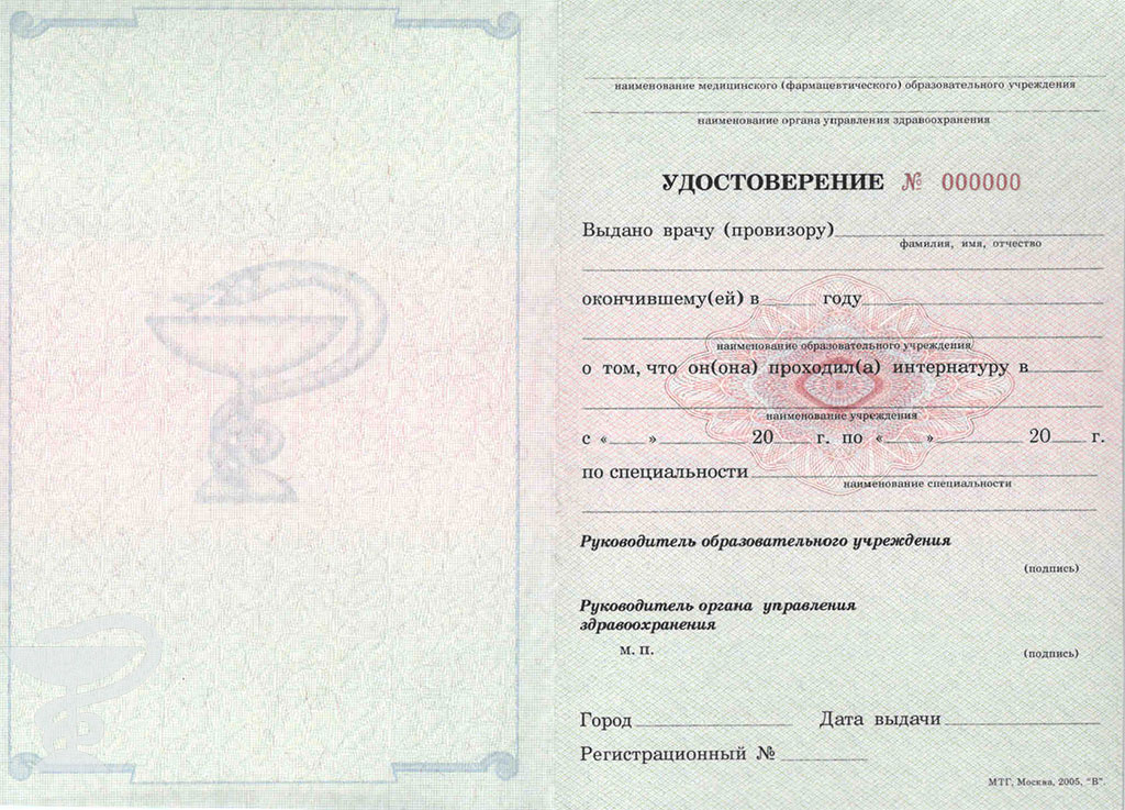 Удостоверение интернатуры выдают специалисту, который успешно прошел последипломное обучение. Документ получают в медицинском вузе. После выдачи удостоверения интернатуры специалист может заниматься частной практикой, углубляться в педагогическую деятельность по выбранной медицинской специальности или продолжать обучение в ординатуре по узкой специализации.